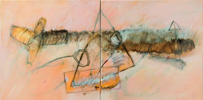 Diptychon „crossover“, 2013 | Acrylfarbe, Pastell auf Leinwand | je 40 x 40 cm