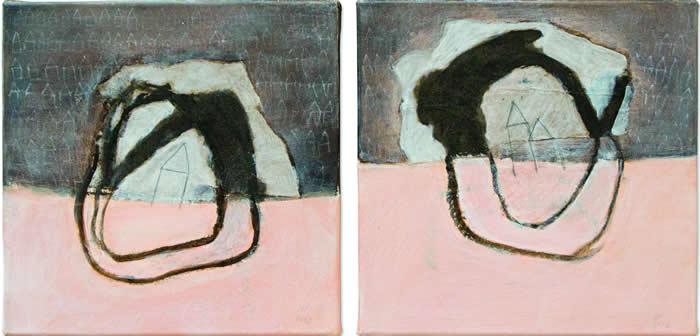 Diptychon „haus“, 2013| Acrylfarbe, Pastell auf Leinwand | je 30 x 30 cm
